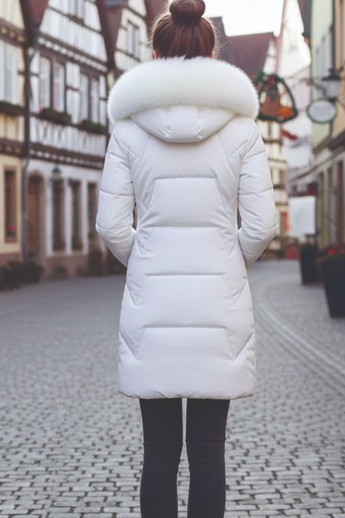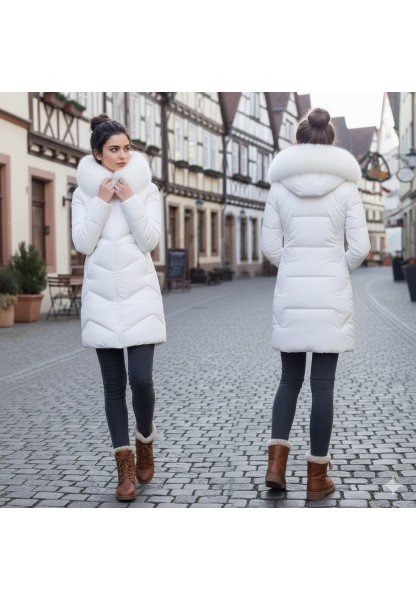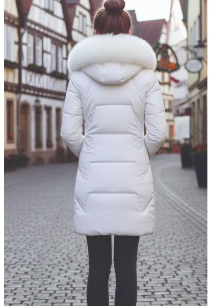 • Kışlık Kürklü Kapüşonlu Kadın Şişme Mont