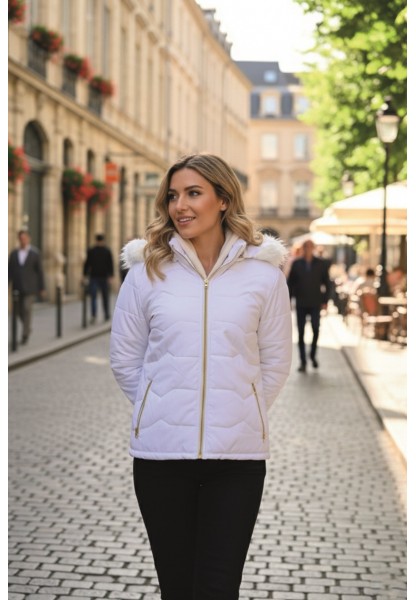 • Kışlık Kürklü Kapüşonlu Kadın Şişme Mont