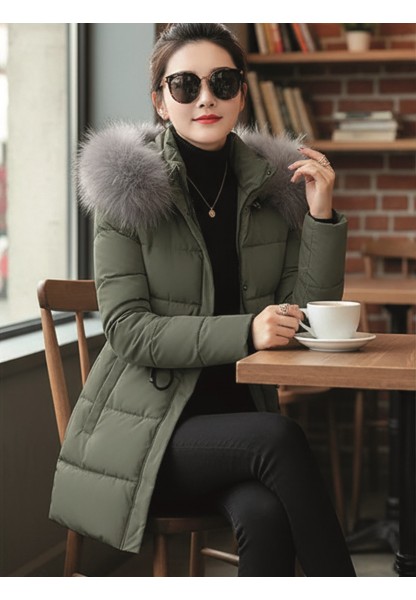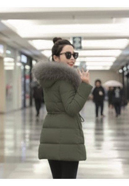• Kışlık Orta Boy Kapüşonlu Kürklü Su Geçirmez Şişme Mont co122haki