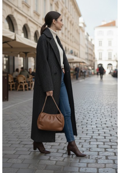 • Kışlık Astarlı Balık Sırtı Detaylı Kadın Kaşmir Kaban