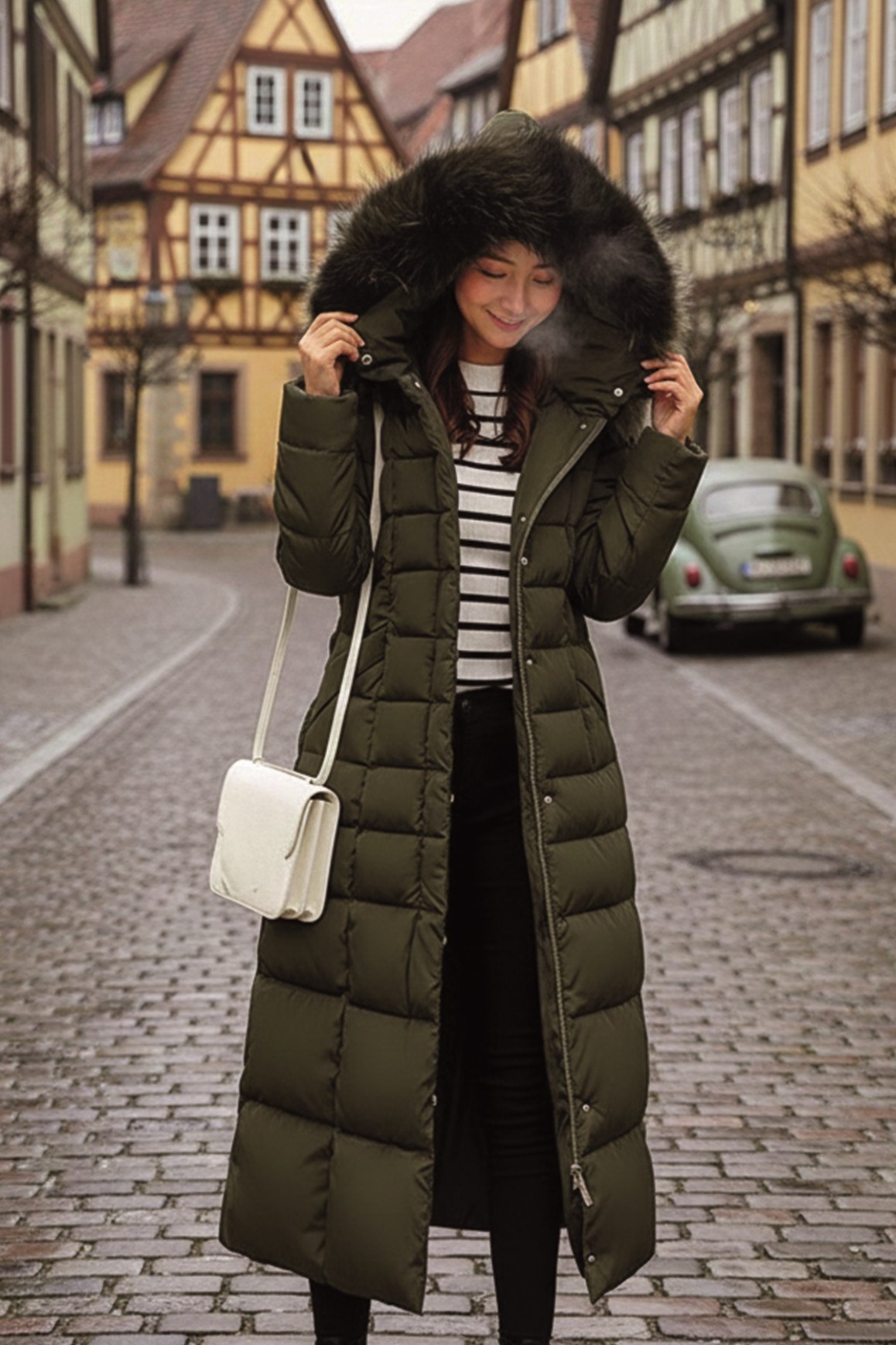 • Kışlık Tam Boy Kürklü Şişme Kadın Mont
