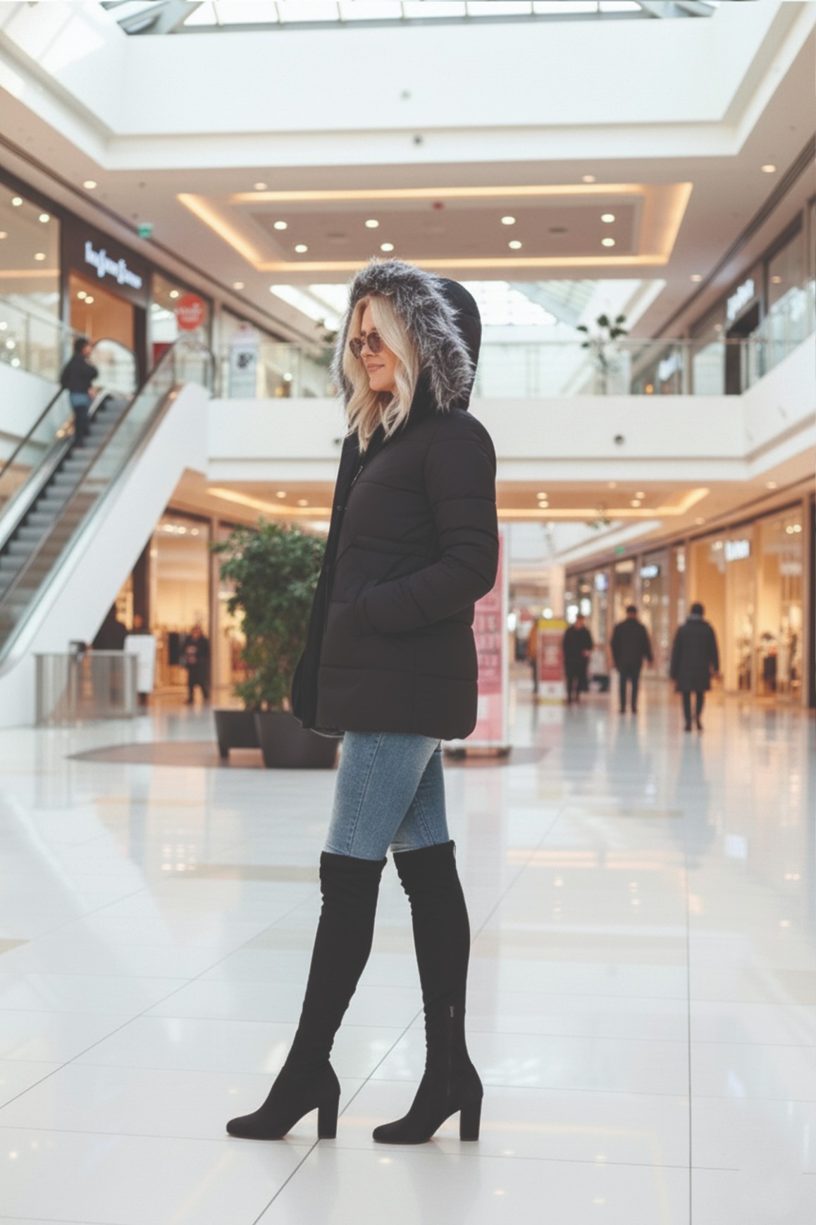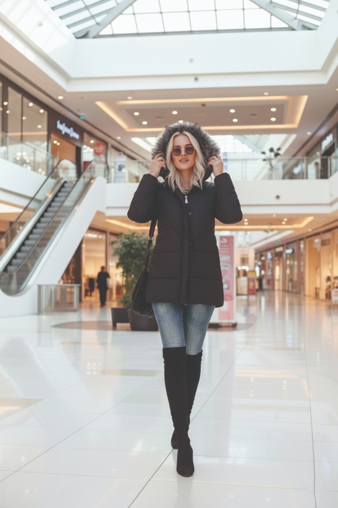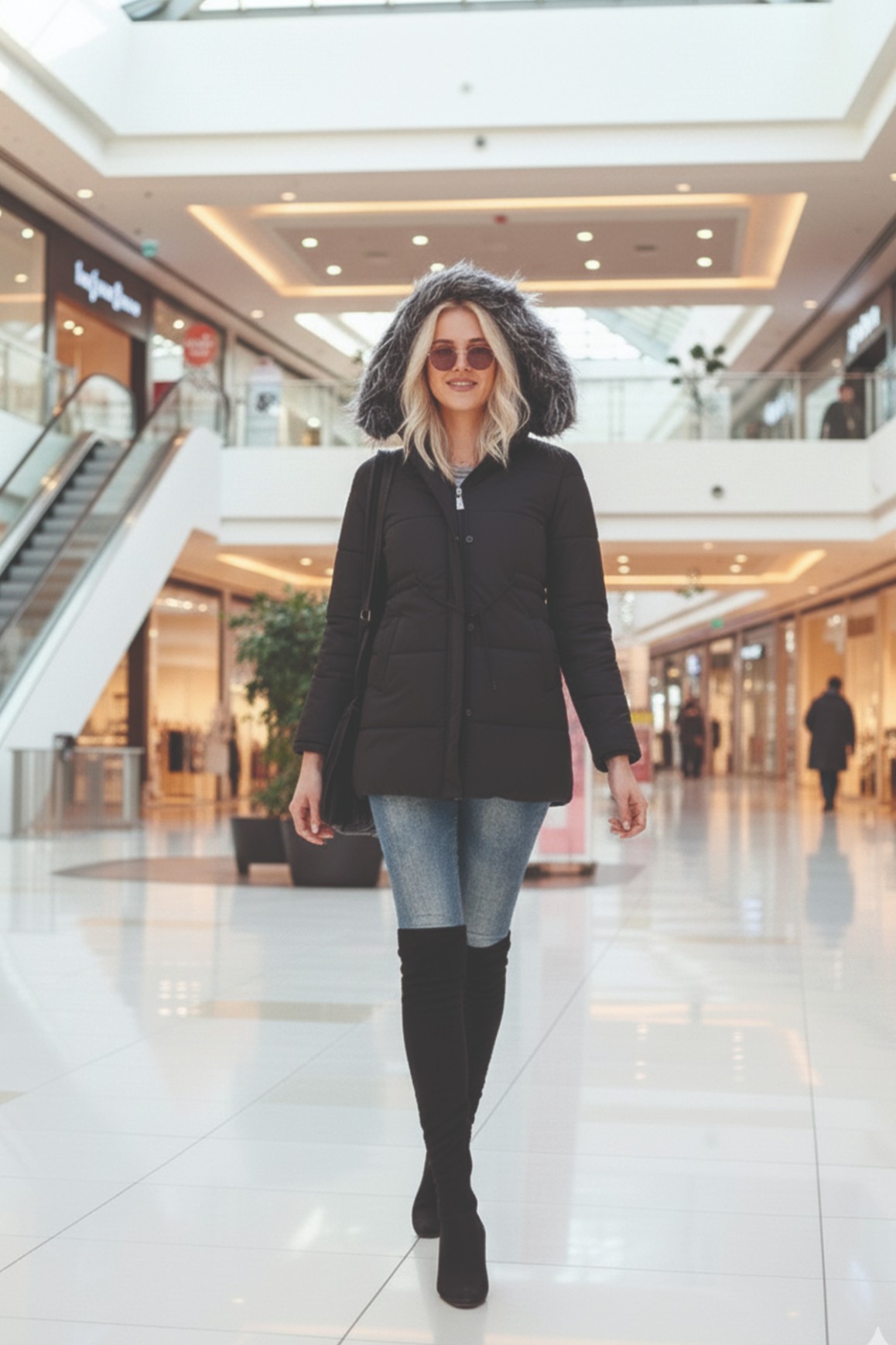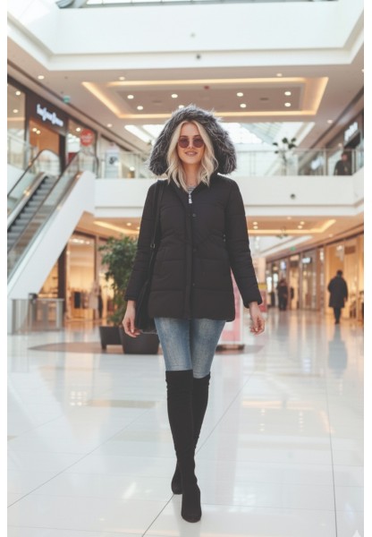 • Kışlık Yaka Kürklü Uzun Kadın Şişme Mont