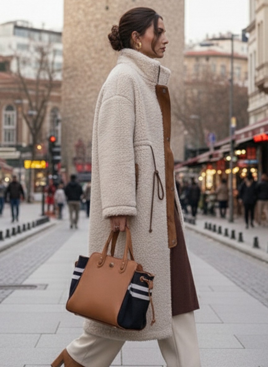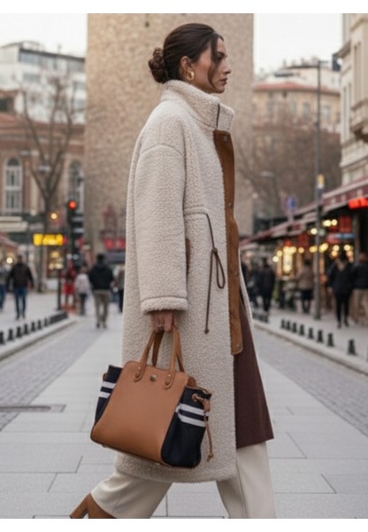• Peluş Beli Bağcık Detaylı Fermuarlı Ceket