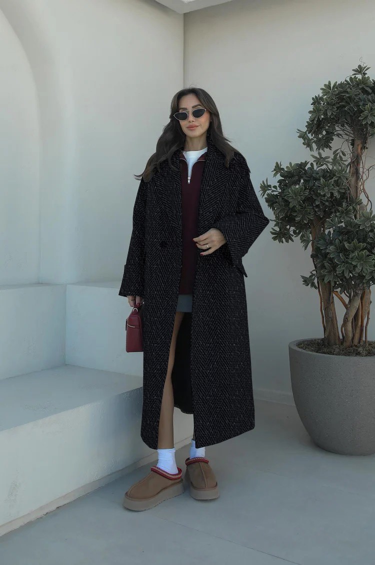 • Salaş Balık Sırtı Desenli Kaşe Kaşmir Kaban astarlı