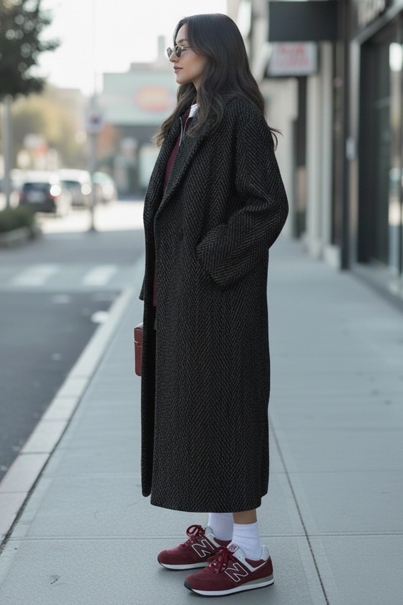 Salaş Balık Sırtı Desenli Kaşe Kaşmir Kaban astarlı