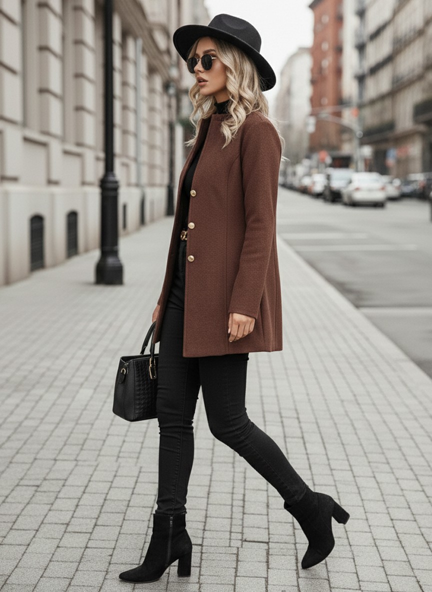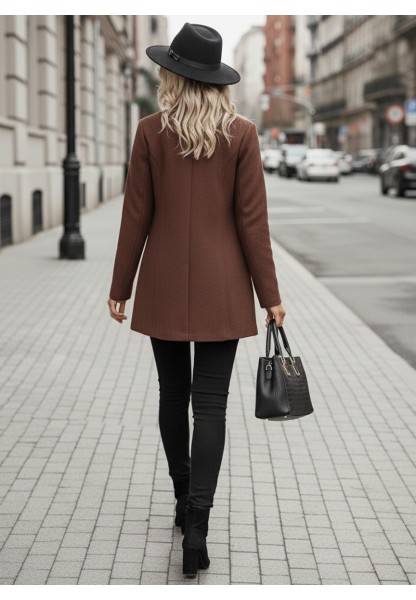 • Şık Kahverengi Tasarım Yaka Kaşe Kaban