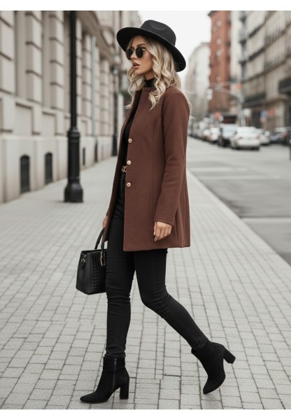 Şık Kahverengi Tasarım Yaka Kaşe Kaban