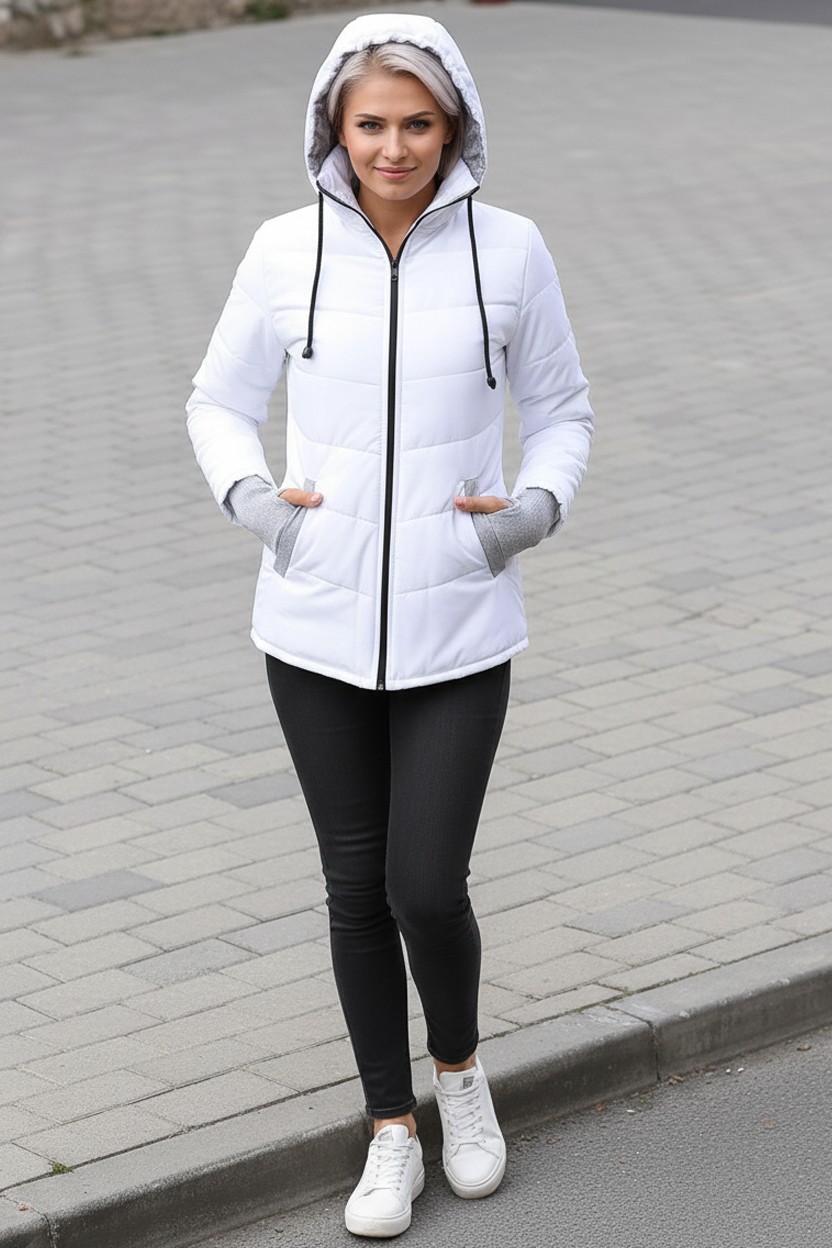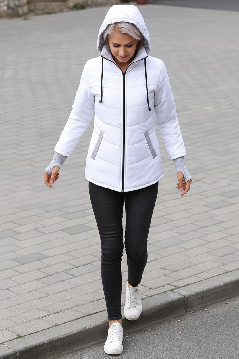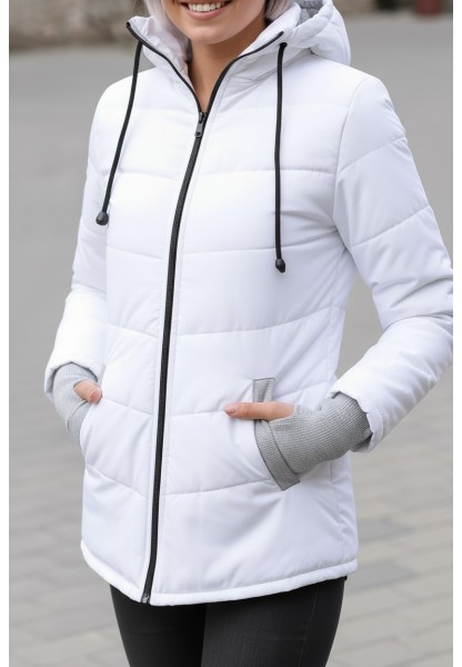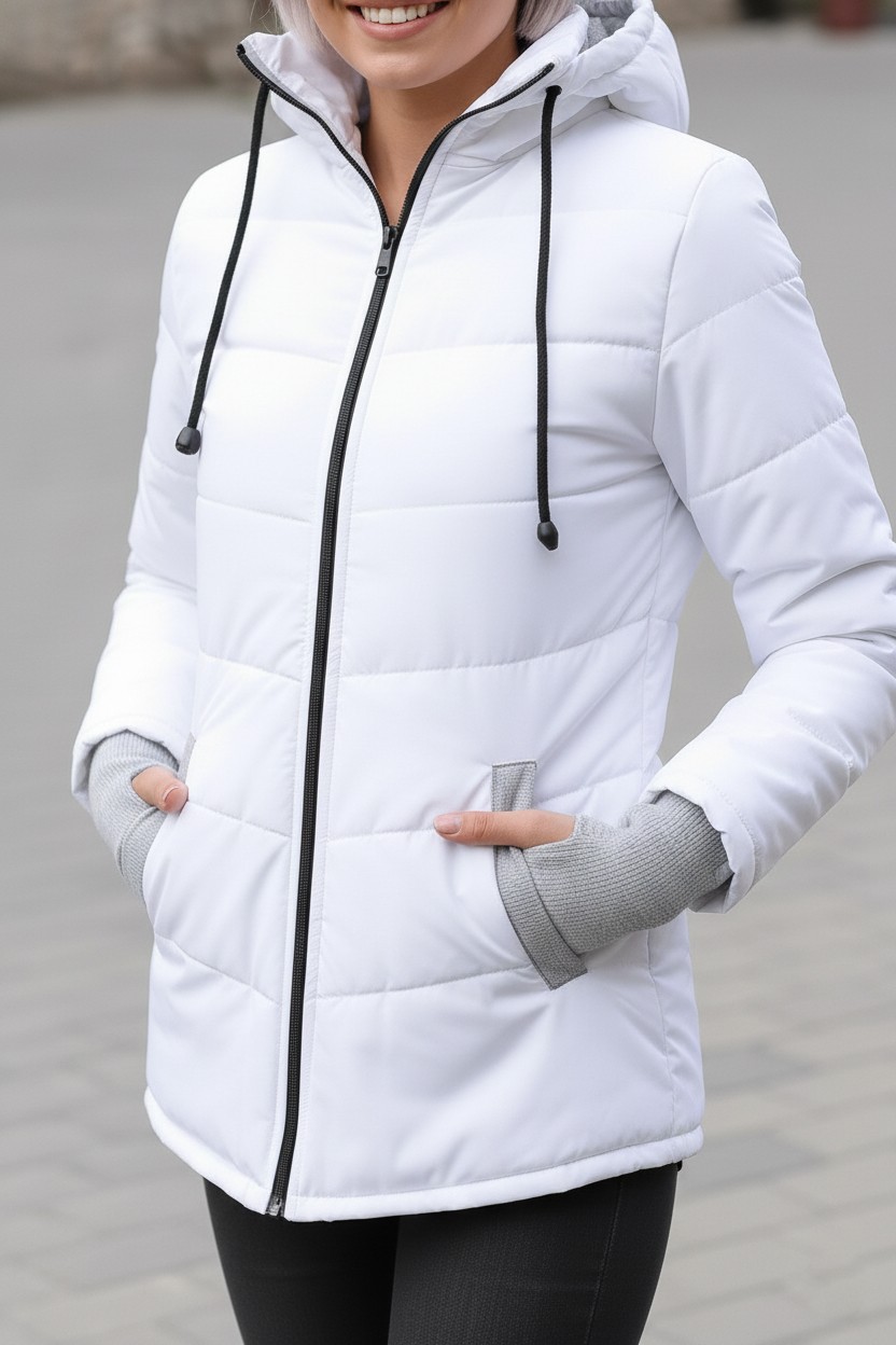 Günlük Su Geçirmez Kışlık Şişme Kadın Eldivenli Beyaz Mont