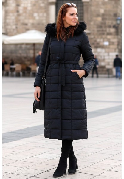Günlük Kışlık Tam Boy Şişme Kadın Siyah Mont