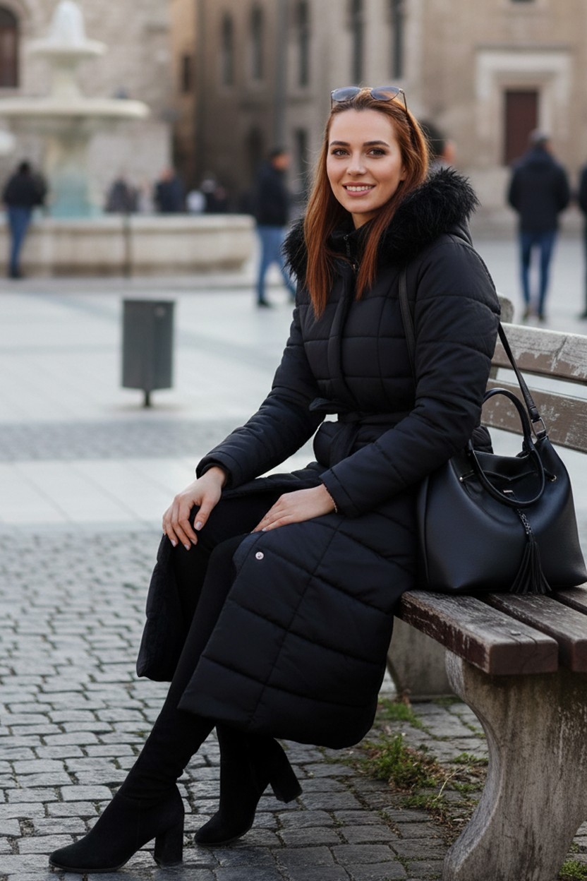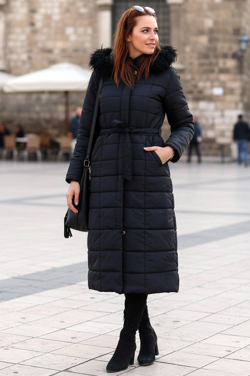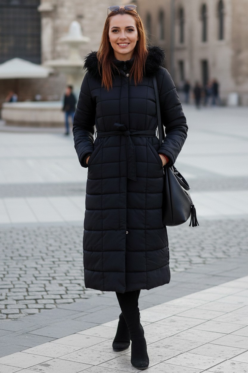 • Günlük Kışlık Tam Boy Şişme Kadın Siyah Mont