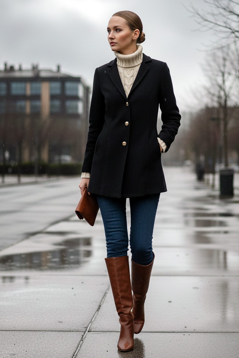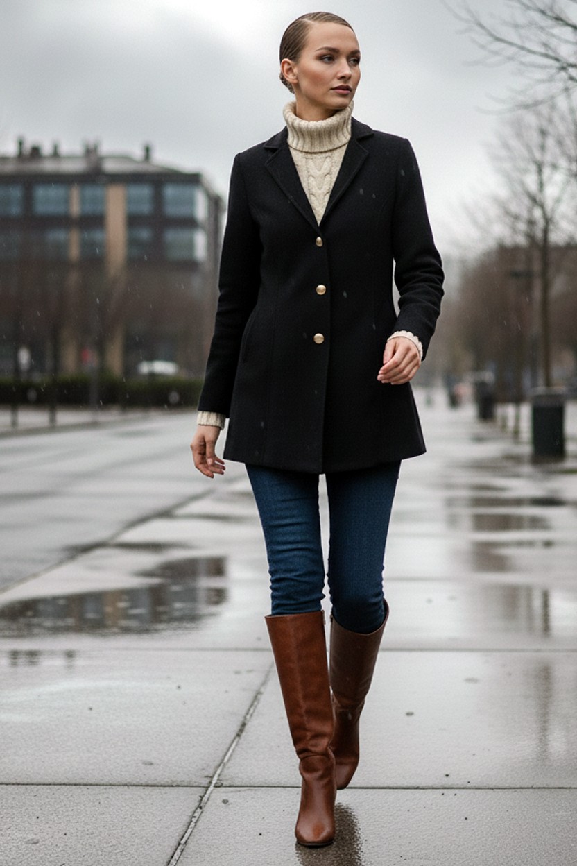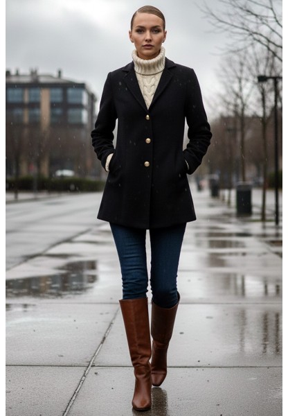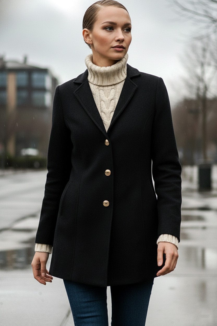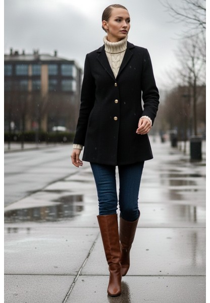 • Tasarım Yaka Şık Üç Düğme Kaşe Siyah Kaban
