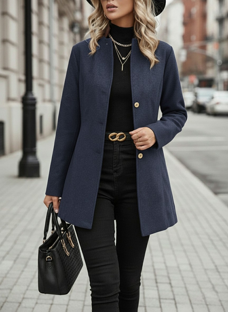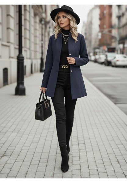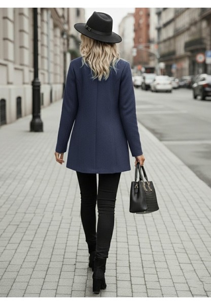 • Tasarım Yaka Lacivert Kaşe Kaban