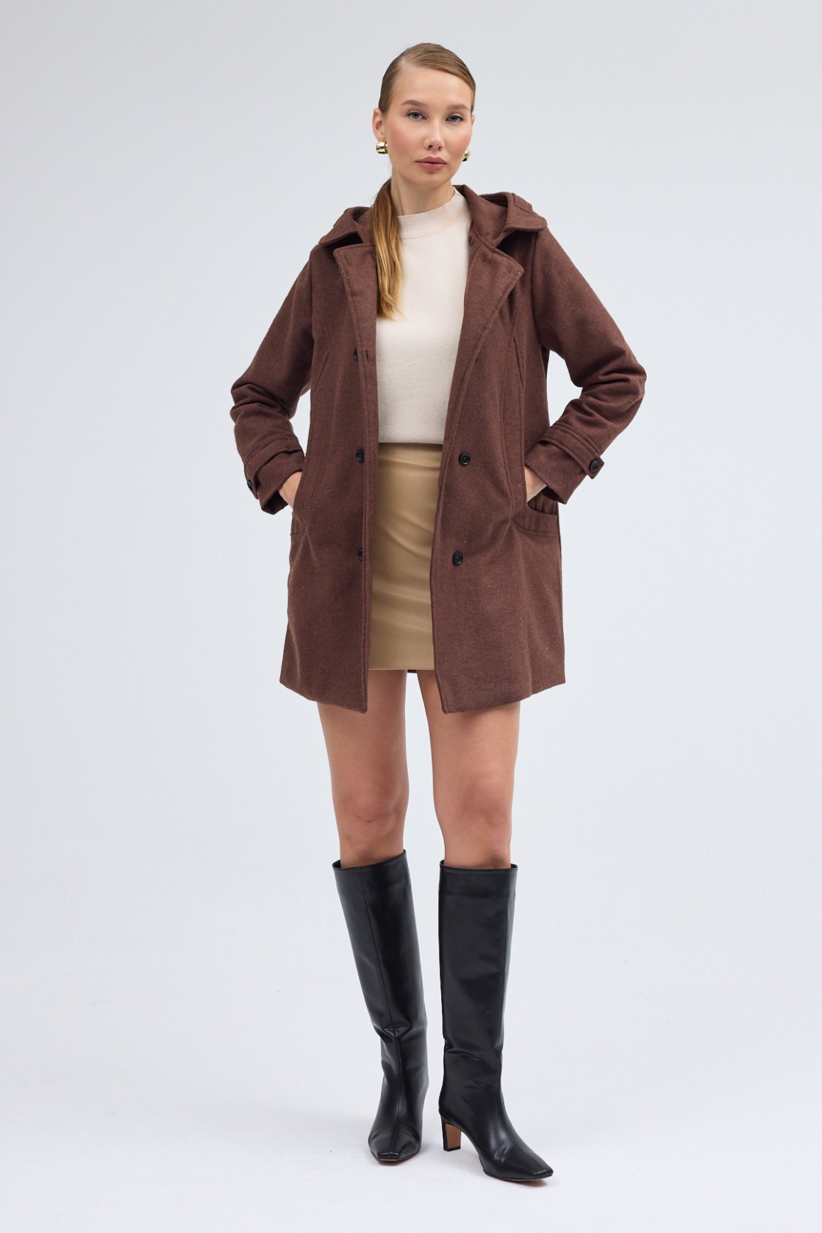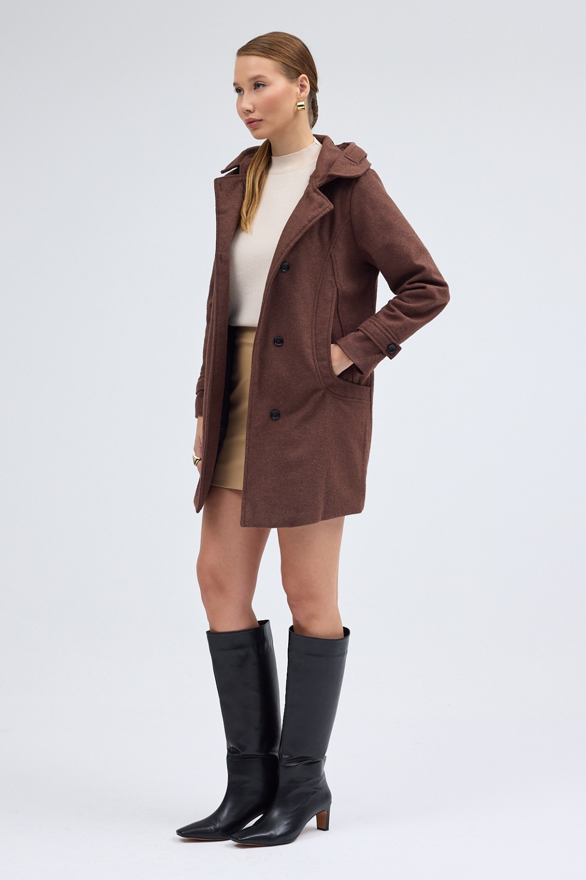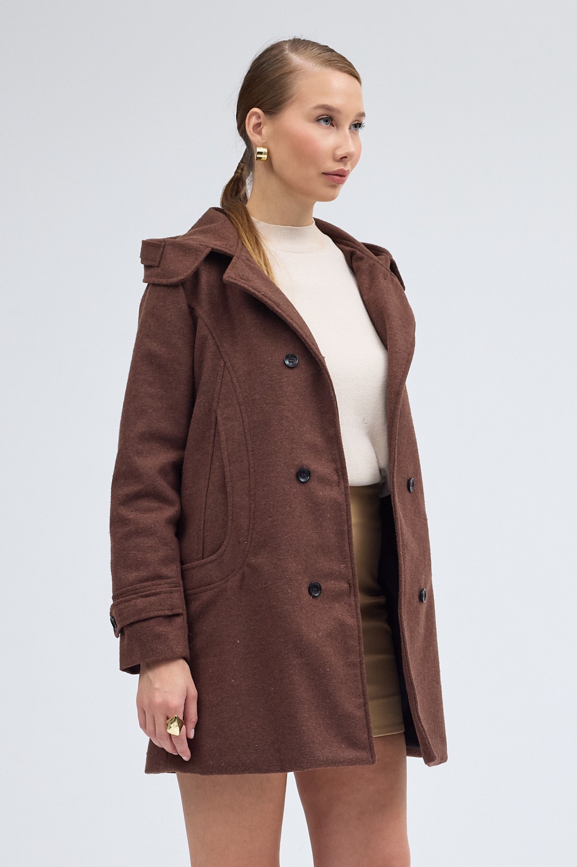 Yaka Detaylı Büyük Düğmeli Kaşe Kaban