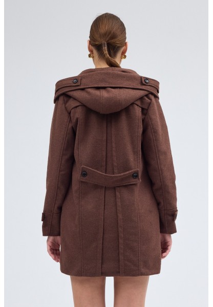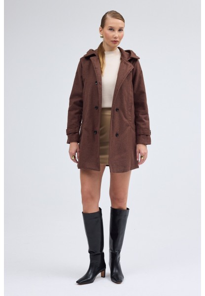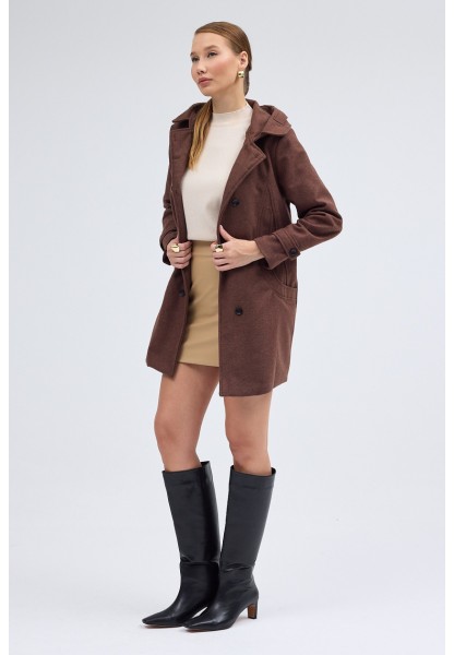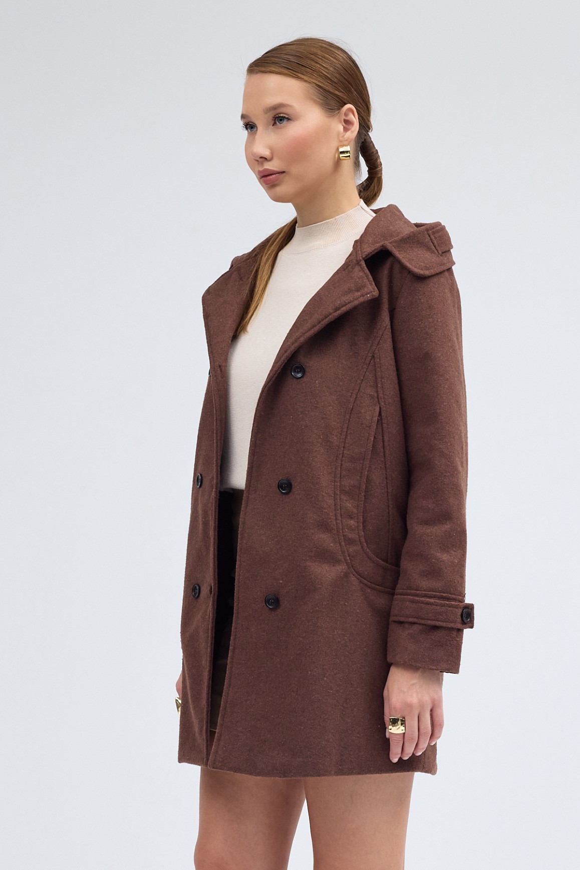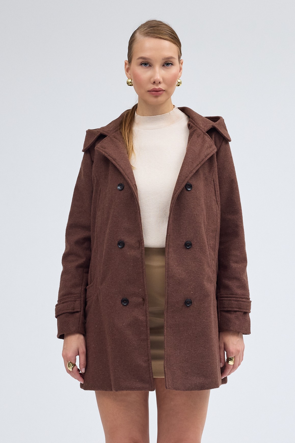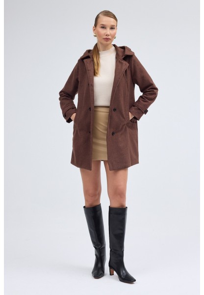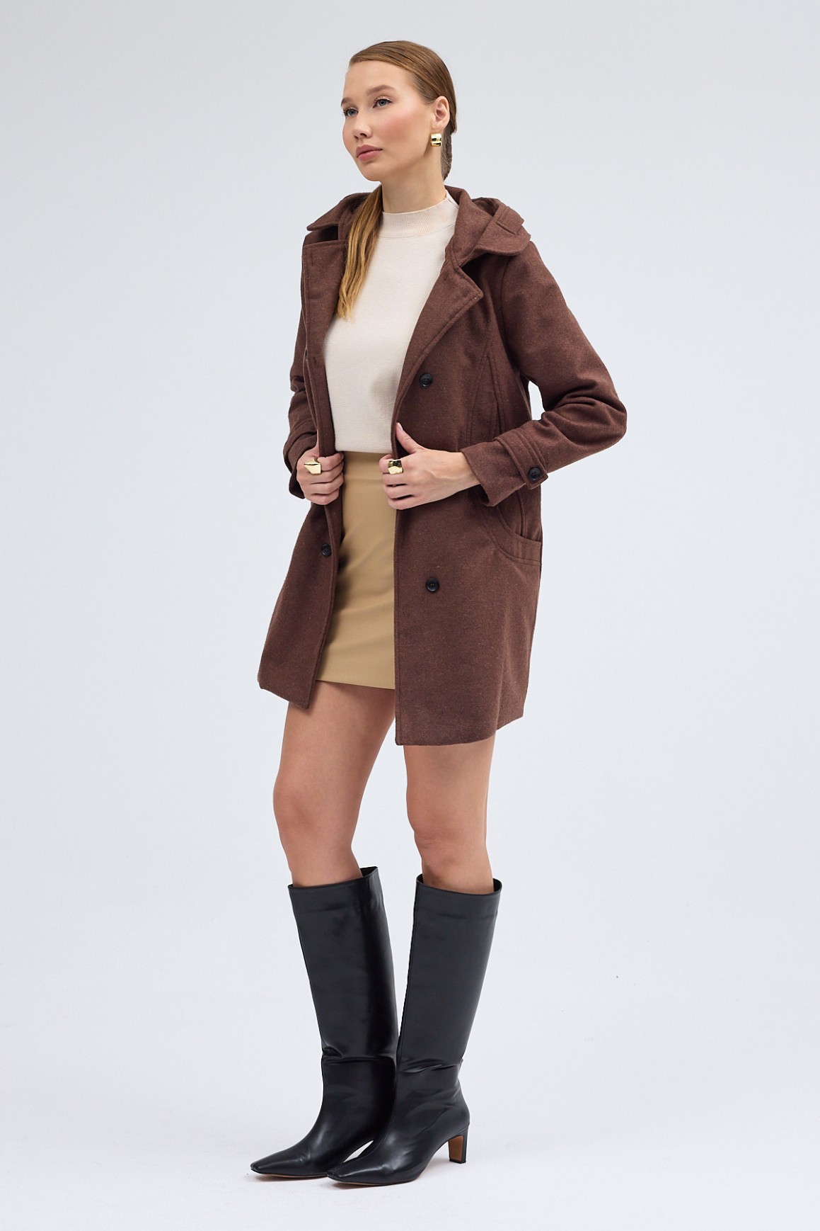Yaka Detaylı Büyük Düğmeli Kaşe Kaban