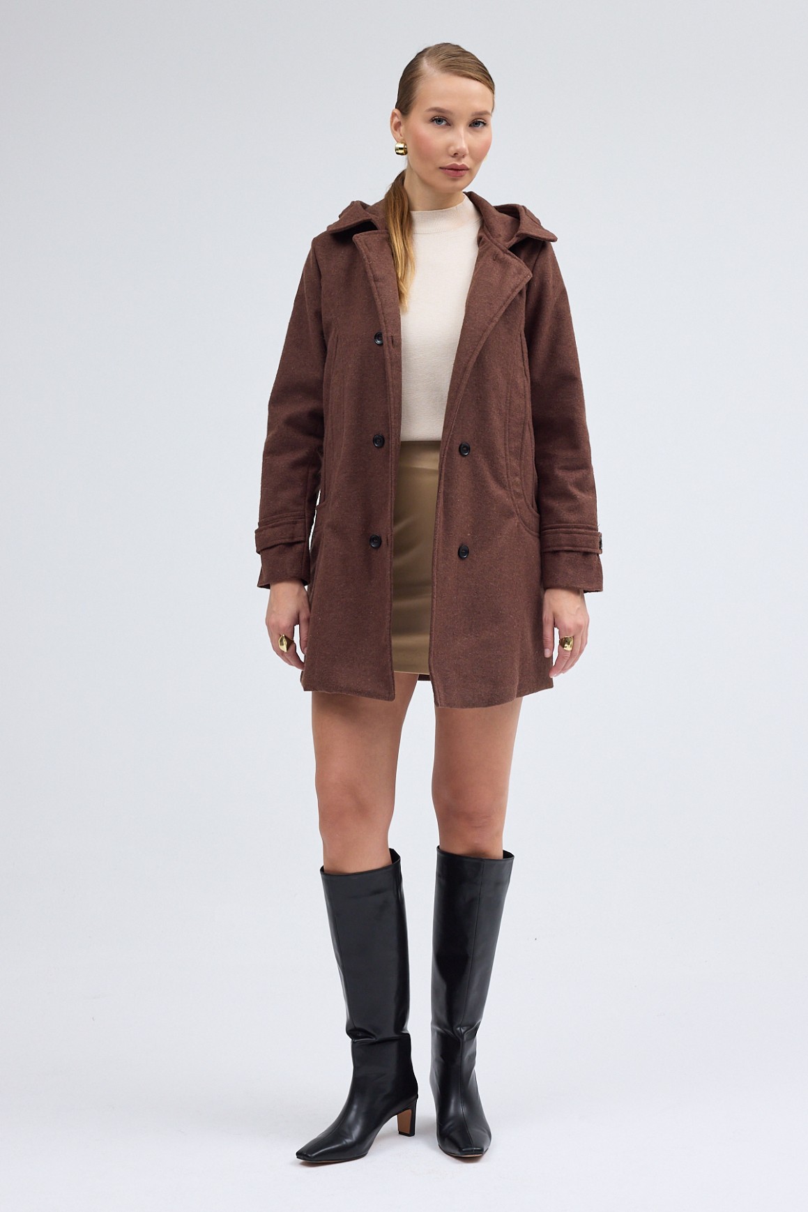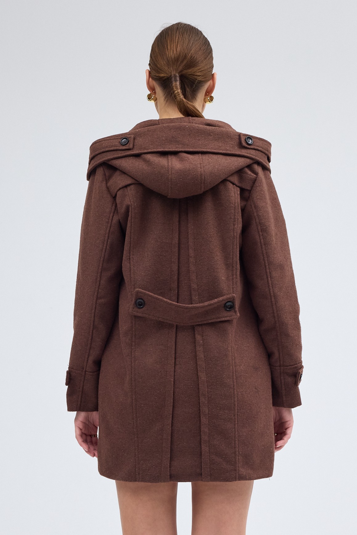 • Yaka Detaylı Büyük Düğmeli Kaşe Kaban