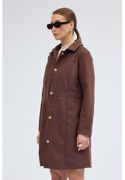 Yaka Detaylı Büyük Düğmeli Kaşe Kaban
