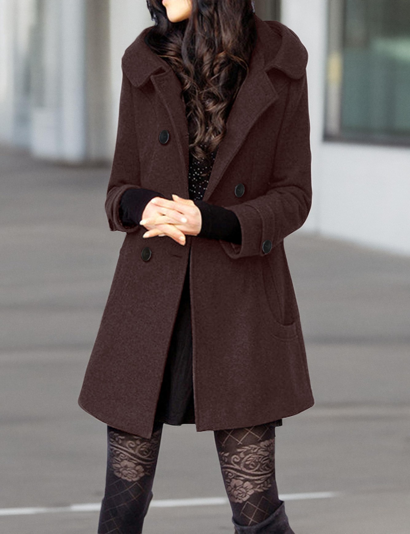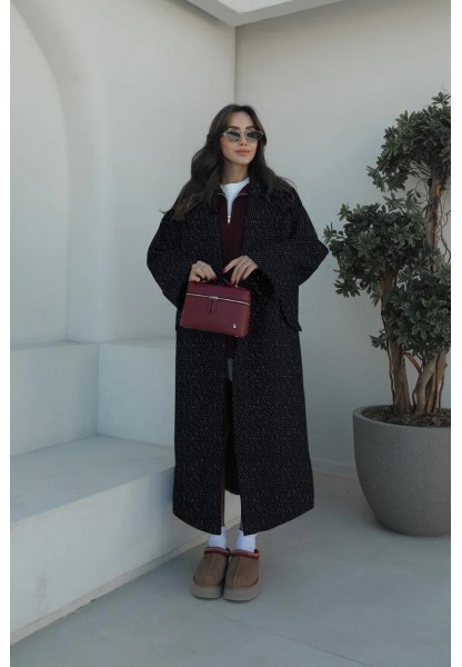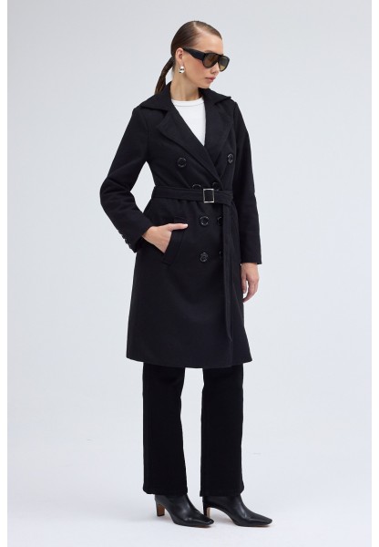 • Yaka Detaylı Büyük Düğmeli Kaşe Kaban