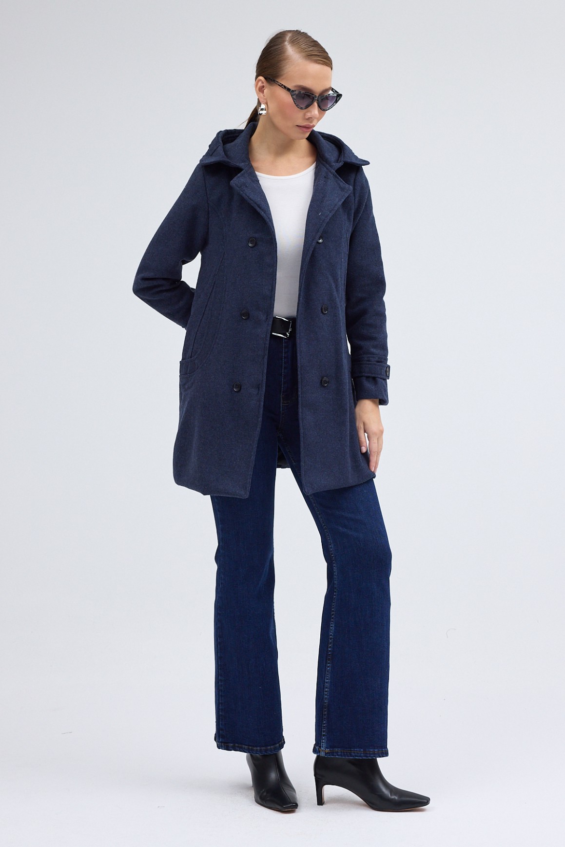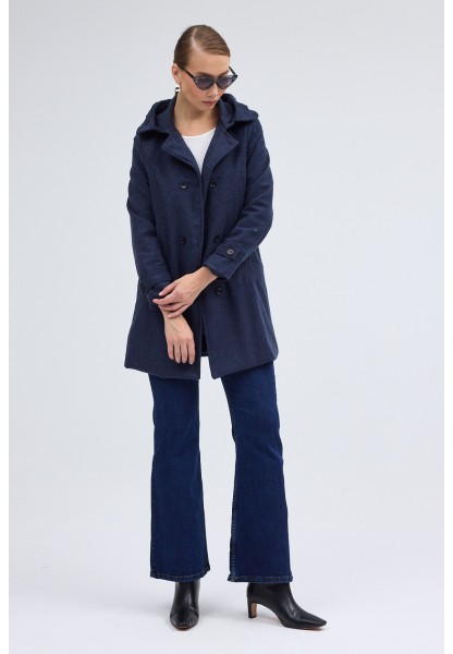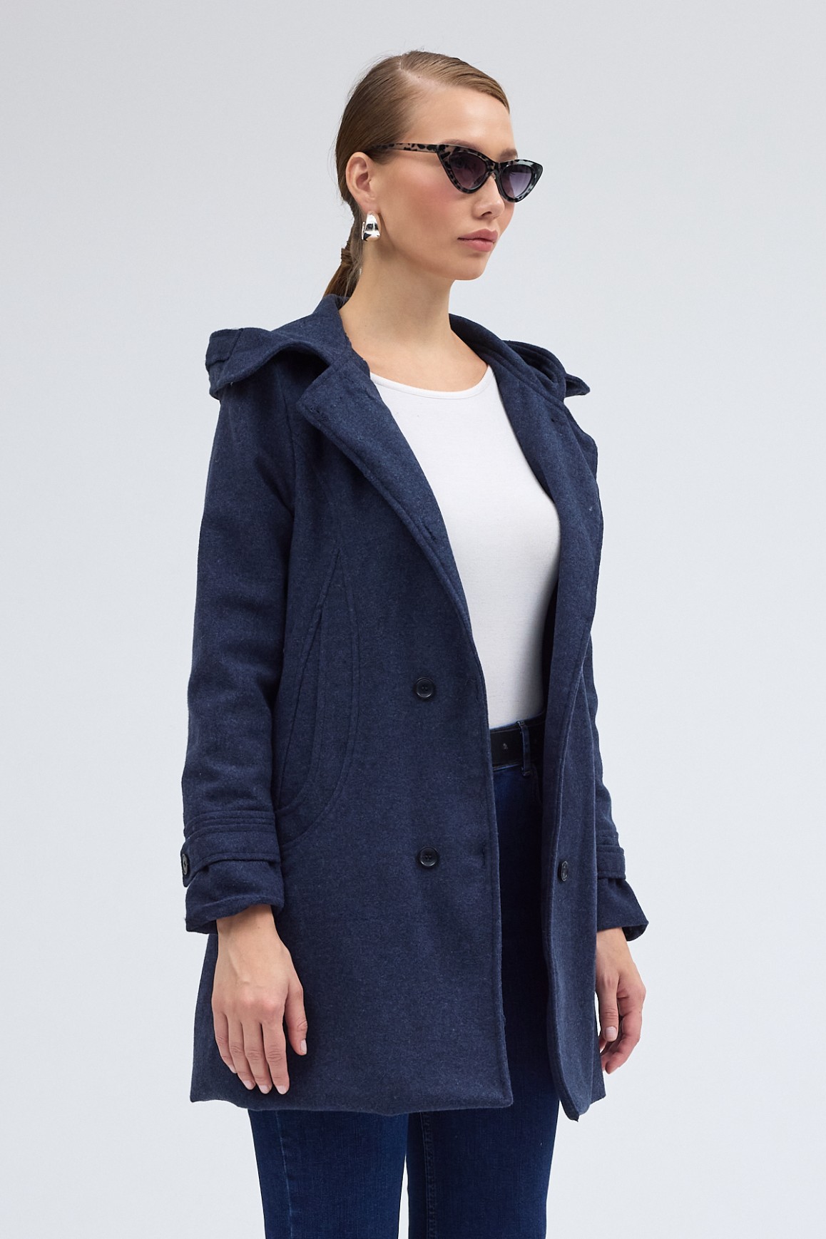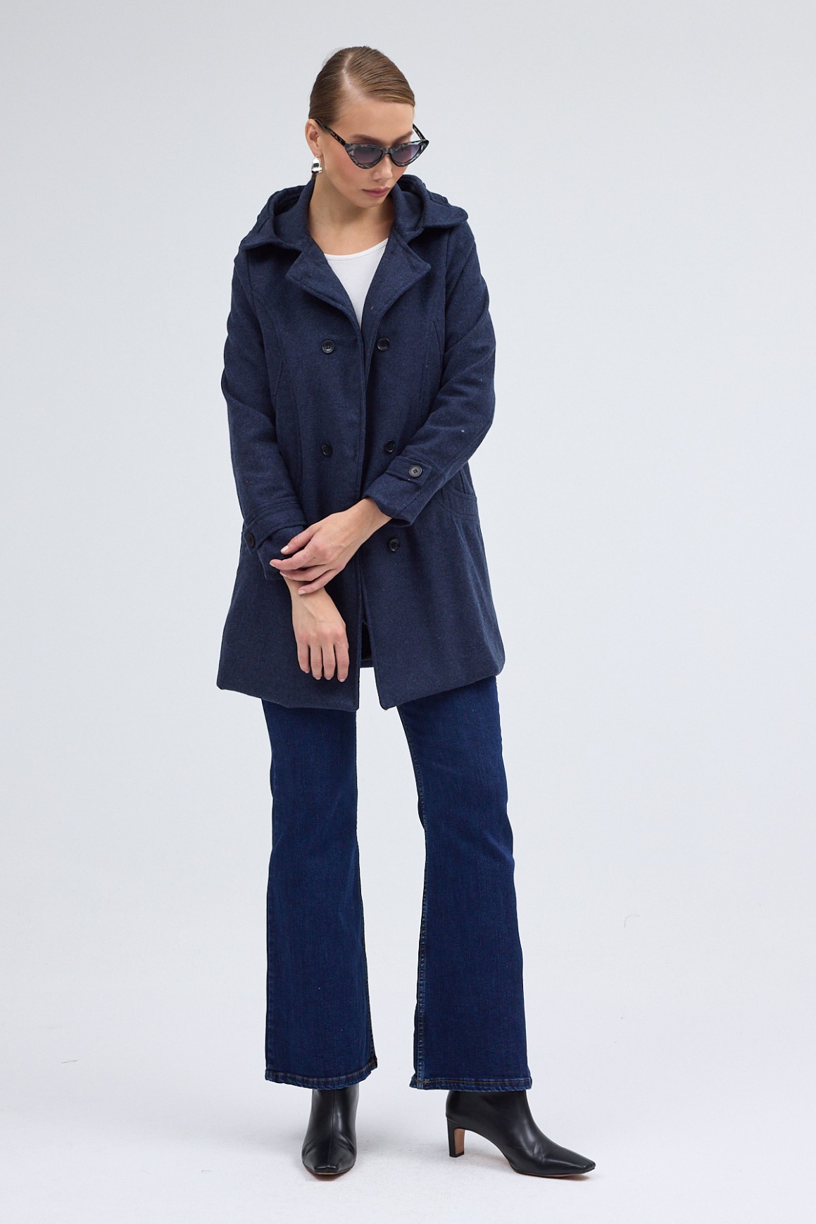 Yaka Detaylı Büyük Düğmeli Kaşe Kaban