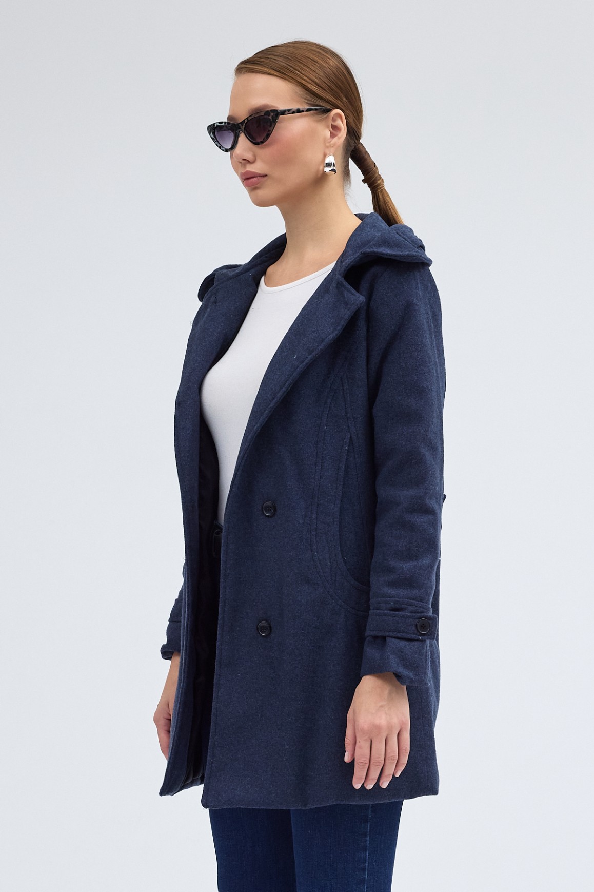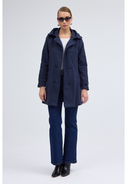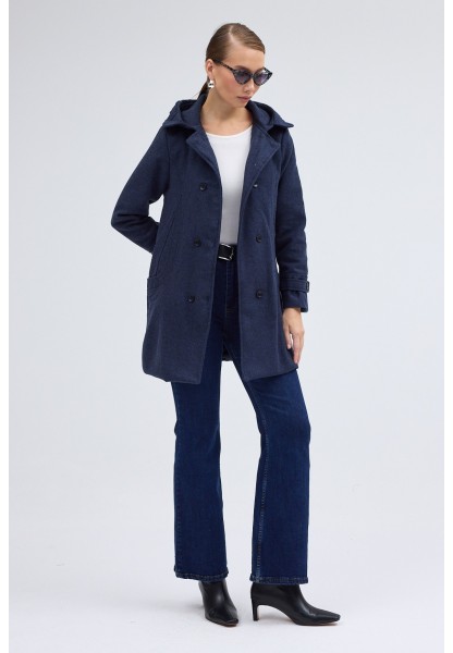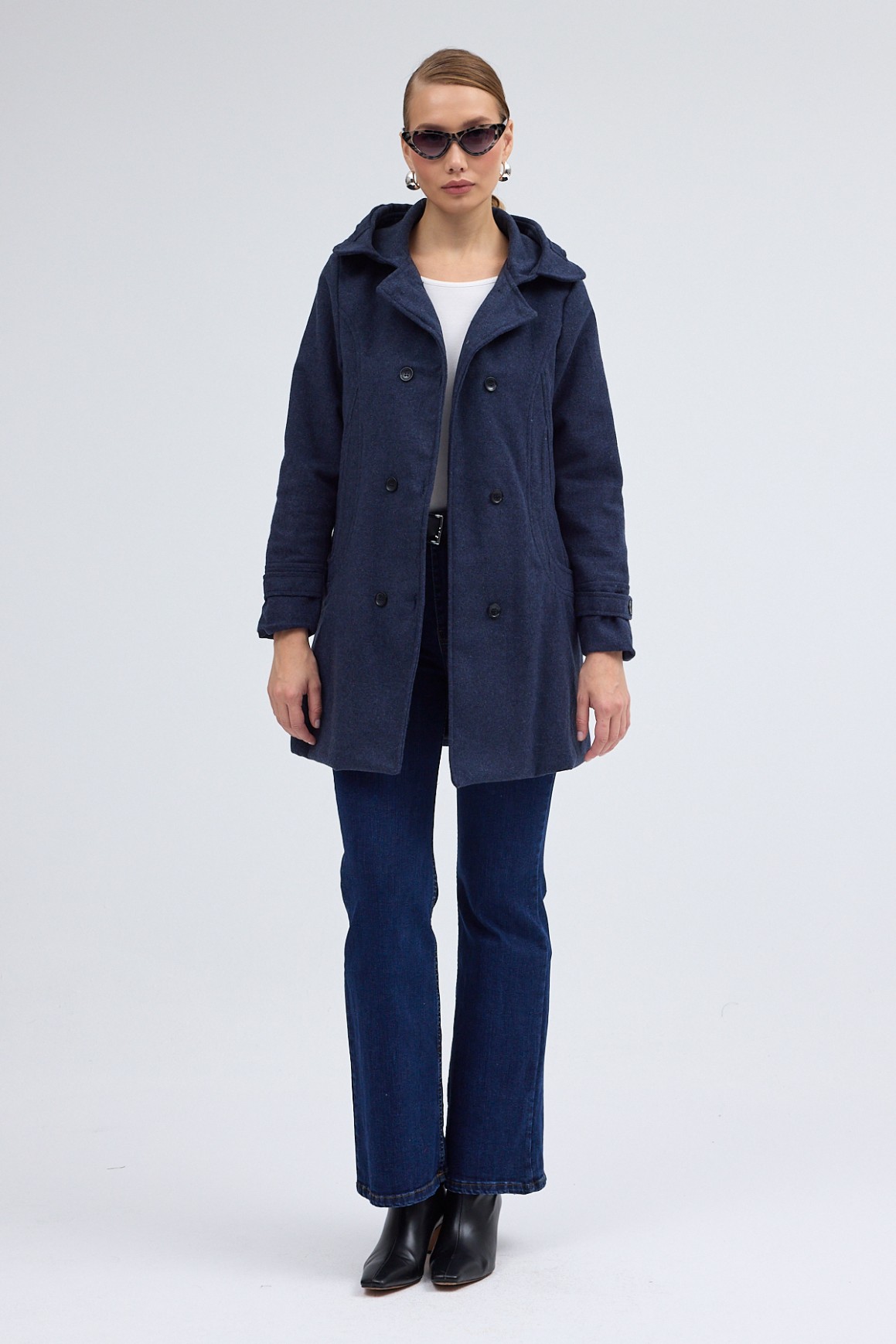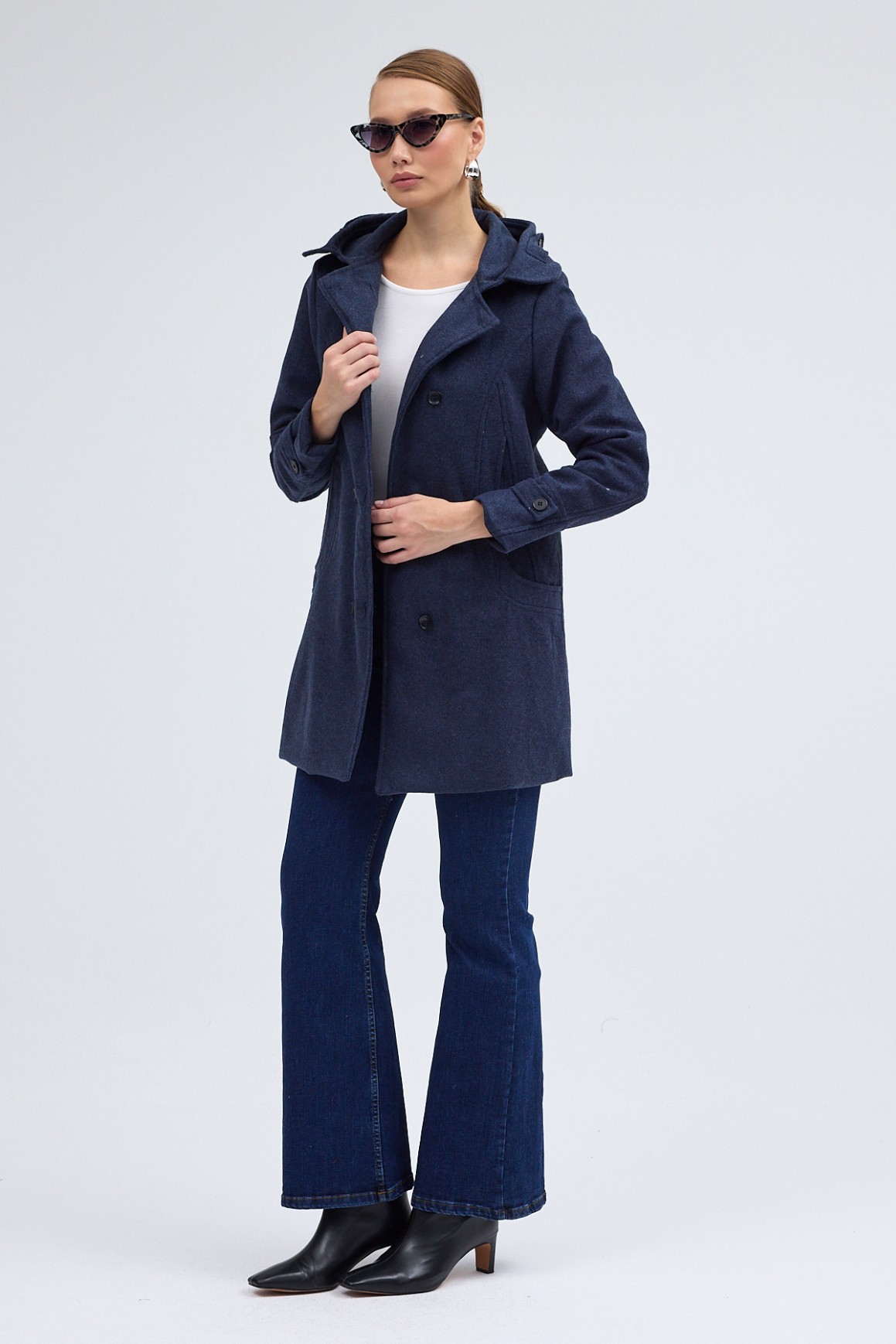 Yaka Detaylı Büyük Düğmeli Kaşe Kaban
