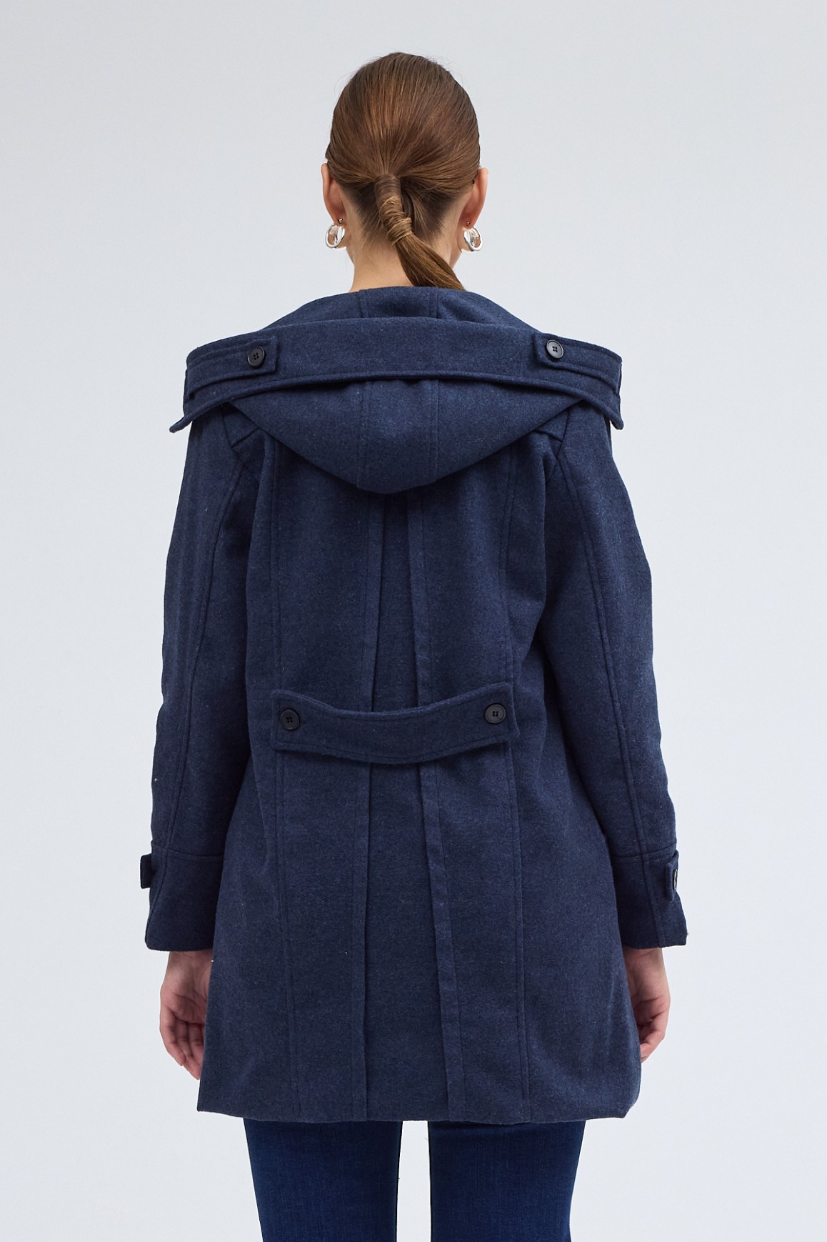 • Yaka Detaylı Büyük Düğmeli Kaşe Kaban