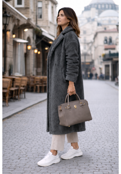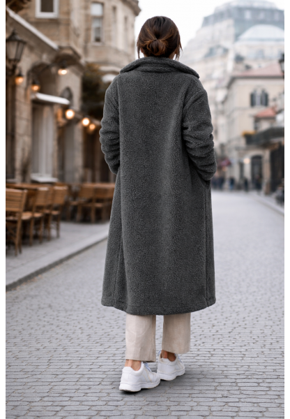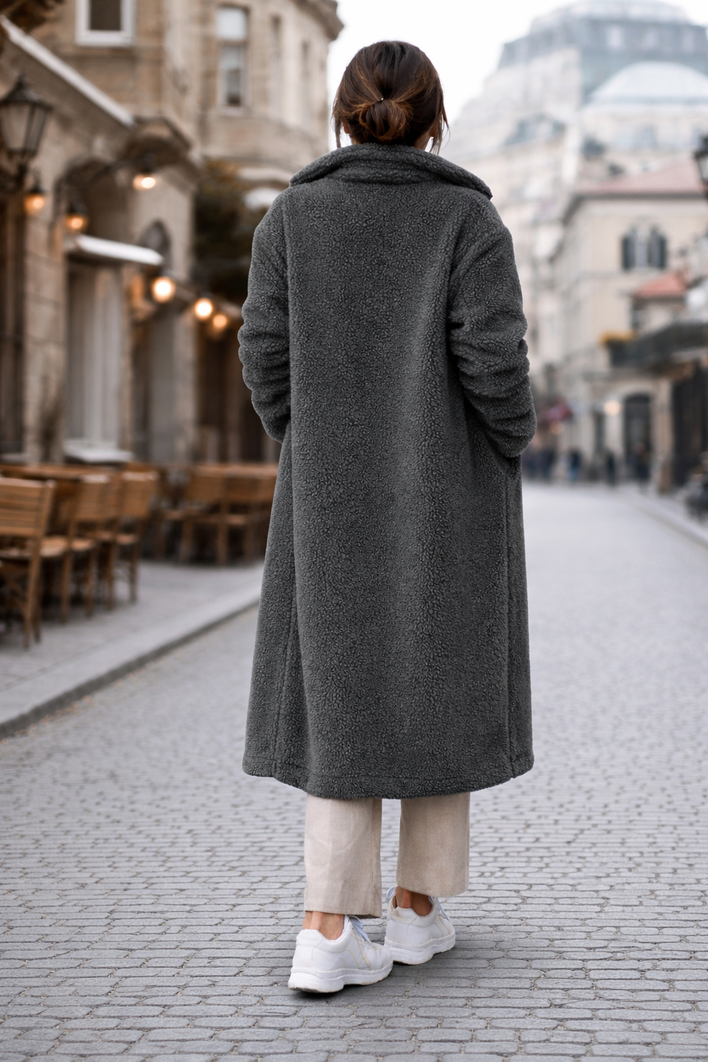 • Yumuşak Dokulu Günlük Kadın Uzun Peluş Füme Ceket